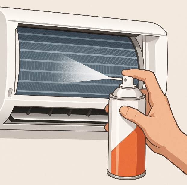 필터를 분리하고, 노출된 냉각핀에 뿌린 후 설명서에 따라 자연 건조시키면 됩니다.