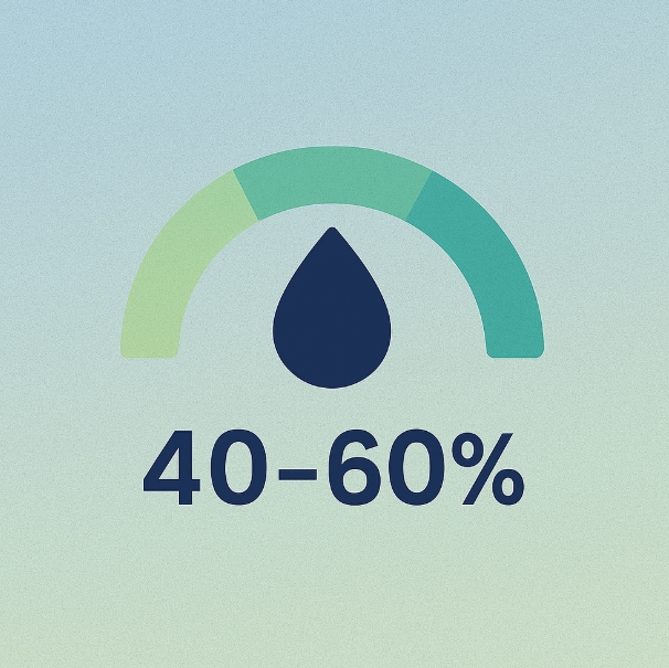 일반적으로 적정 실내습도는 40~60% 수준을 유지하는 것이 가장 이상적입니다.