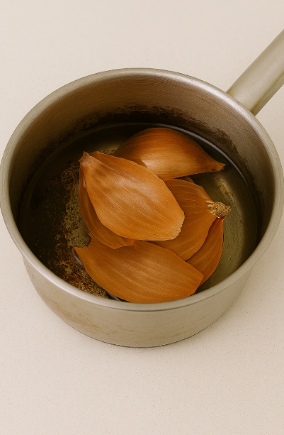 - 탄 냄비에 양파껍질 몇 장을 넣고 물을 붓습니다.
