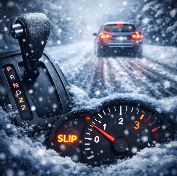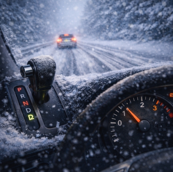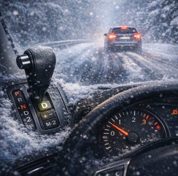 자동차가 자동변속기일 경우에도 눈길에서는 기어 조작이 필요합니다.