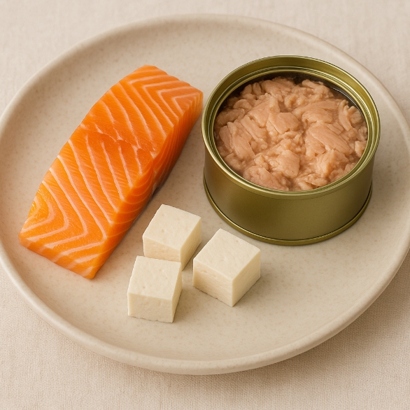 생선류, 특히 연어와 참치는 고품질 단백질 + 오메가3라는 조합을 갖고 있어 건강식단에 빠질 수 없습니다. 연어 100g에는 약 20g 이상의 단백질이 들어 있고, 항염 효과가 있는 오메가3 덕분에 피로회복에도 도움이 돼요.