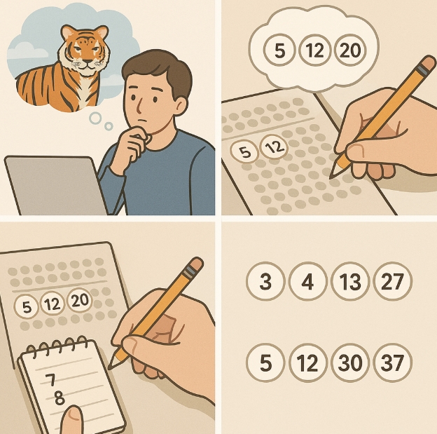 - 중복되는 숫자나 느낌 있는 번호는 메모해 두세요.
