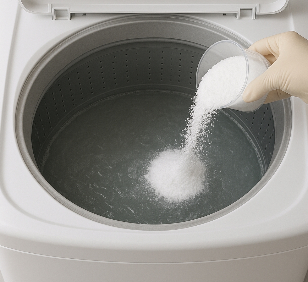 과탄산소다(Sodium Percarbonate)는 탄산소다에 과산화수소를 결합한 형태의 친환경 세정제입니다. 물에 녹으면 활성산소가 발생하면서 세탁조 내부의 찌꺼기, 곰팡이, 냄새 유발균을 산화·분해하는 역할을 합니다.