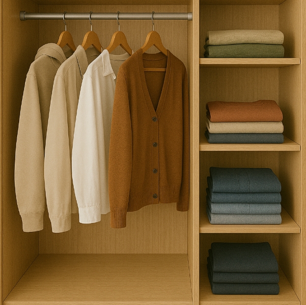 저는 겨울엔 두꺼운 코트를 옷장 상단에 올려두고, 봄·가을에는 후드와 얇은 가디건을 눈높이 가까이에 둡니다.