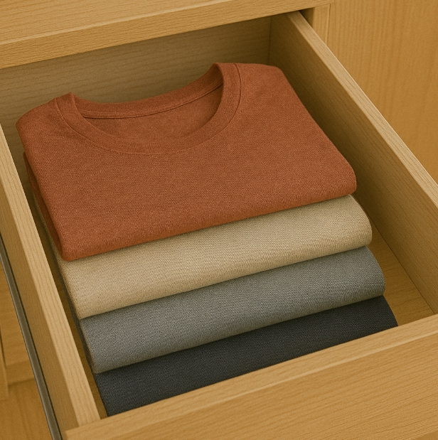 예전엔 막연히 ‘상의 서랍’에 다 넣었는데, 지금은 카테고리와 색상을 기준으로 나누니 옷 고르는 시간이 절반 이상 줄었어요.