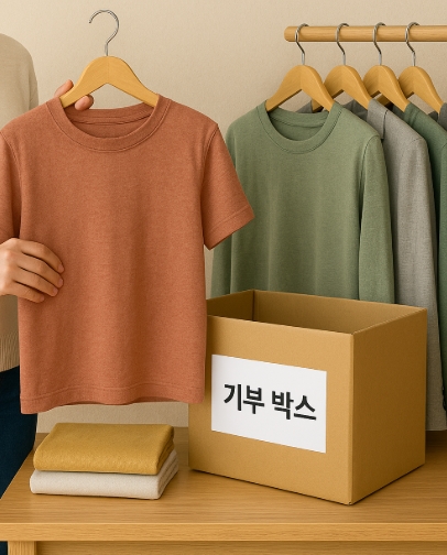입지 않은 옷은 앞으로도 입을 확률이 낮습니다. 저는 '기부 박스'를 따로 마련해두고 한 달에 한 번 비우는 습관을 들였어요. 마음도 옷장도 훨씬 가벼워졌습니다.