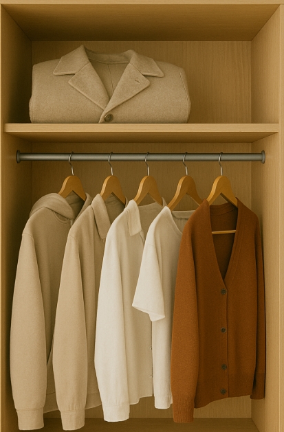 저는 겨울엔 두꺼운 코트를 옷장 상단에 올려두고, 봄·가을에는 후드와 얇은 가디건을 눈높이 가까이에 둡니다.