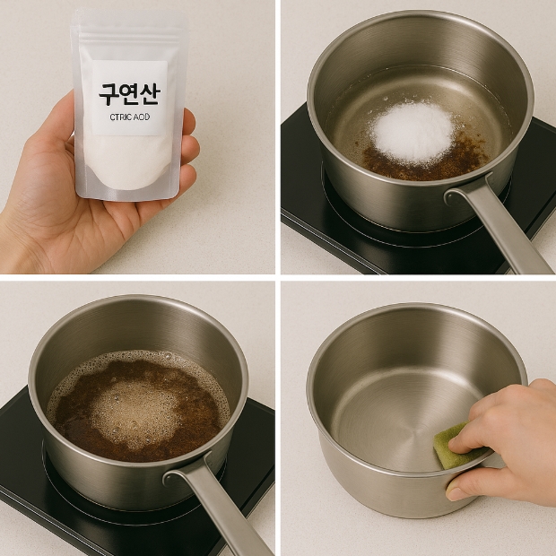 - 냄비에 물과 구연산(1큰술)을 넣고 10분간 끓입니다.